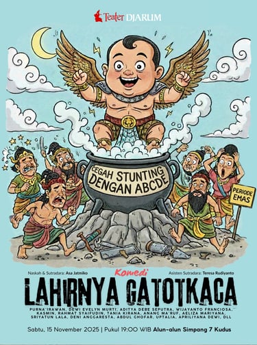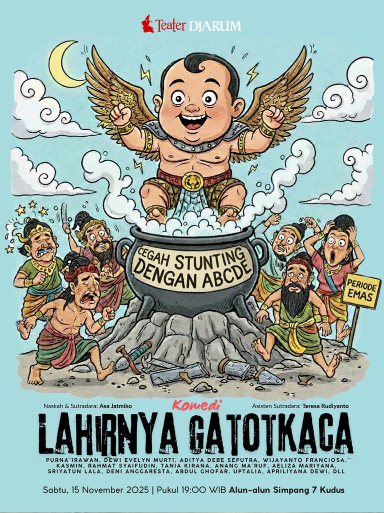 Teater Djarum bersama Bakti Sosial Djarum Foundation akan berpentas komedi berjudul "Lahirnya Gatotkaca" karya dan sutradara Asa Jatmiko.
